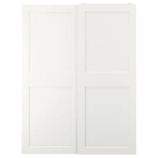 GRIMO are finisaj laminat alb pe partea frontala si in spate si se combina perfect cu cadrul de dulap alb PAX.