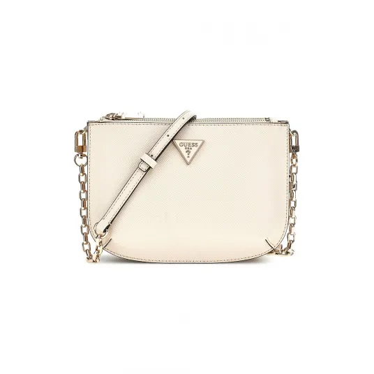 GUESS, Geanta crossbody de piele ecologica cu aspect de piele Saffiano Illia, Alb murdar