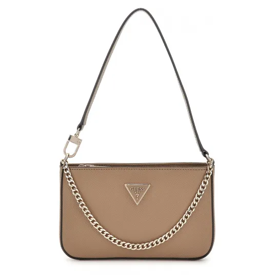 GUESS, Geanta de piele ecologica cu bareta detasabila de umar din lant, Crem