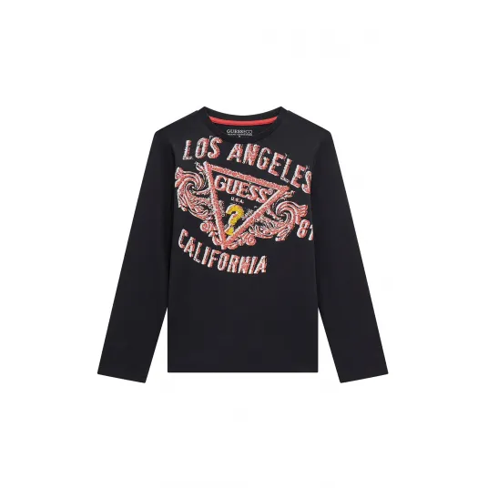 Guess Kids, Bluza din bumbac cu imprimeu text, Rosu, Alb, Negru, 182 CM