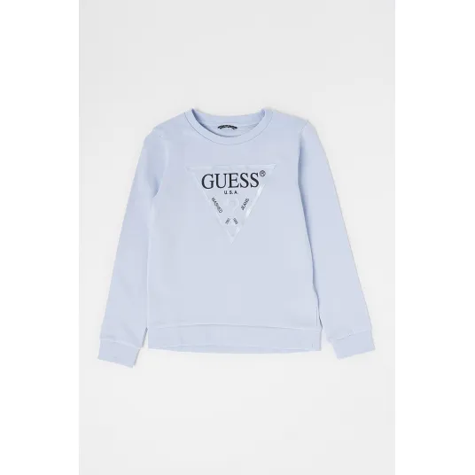 GUESS KIDS, Bluza sport cu decolteu la baza gatului si imprimeu logo, Negru, Albastru lavanda, 146-152 CM