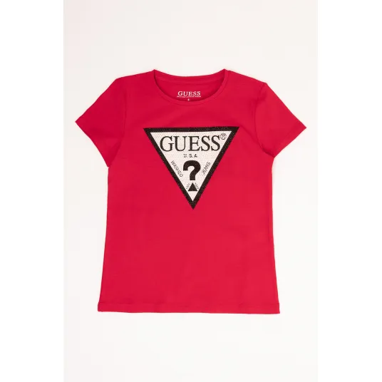 GUESS KIDS, Tricou cu imprimeu logo si strasuri, Rosu inchis, 124-130 CM