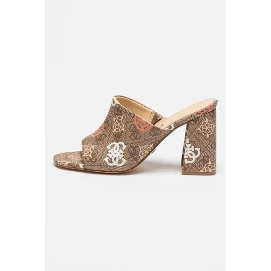 Guess, Papuci cu toc cu garnitura cu model, Maro, 38