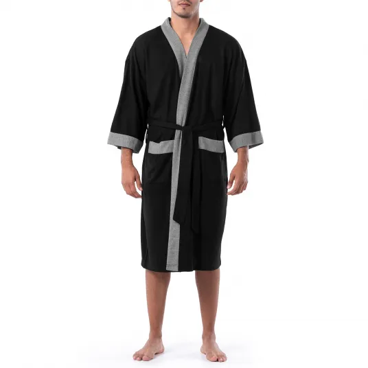 Halat de baie unisex, NUODWELL, Marimea XL, barbati, calitate hoteliera, bumbac, fara formaldehida si fara fluorescent, confortabil, negru