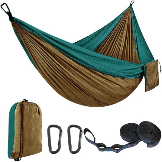 Hamac din material tip parasuta, ultra usor, ultra portabil, excelent pentru camping, outdoor, backpacking, 270x140 cm, doua curele de prindere si carabine incluse, verde vi maroHamac din material tip parasuta, ultra usor, ultra portabil, excelent pentru camping, outdoor, backpacking, 270x140 cm, doua curele de prindere si carabine incluse, verde vi maro223191682223191682