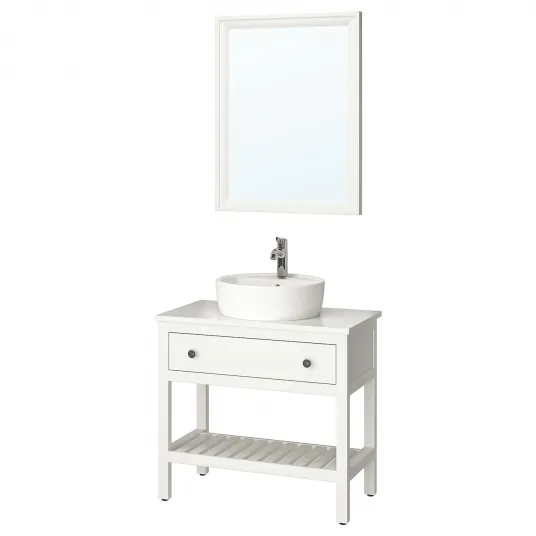 • Nume produs: Set mobilier de baie IKEA HEMNES / TORNVIKEN, 4 piese, alb/baterie Voxnan, 82 cm