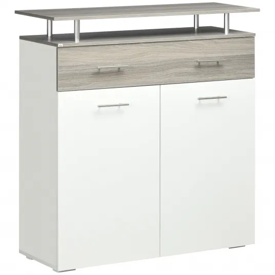 Cu aceasta mobila de living HOMCOM care poate tine farfurii, tacamuri si vesela, nu mai trebuie sa va deplasati dintr-o parte in alta a casei pentru a recupera obiectele de care aveti nevoie. Cu liniile sale simple si curate, dulapul multifunctional are o parte inchisa, un sertar si 2 rafturi deschise pentru a va oferi o multime de spatiu de gestionat. Dulapurile sunt ideale pentru depozitarea lucrurilor esentiale in orice incapere, de la camera de zi la holul de intrare, de la baie la bucatarie.