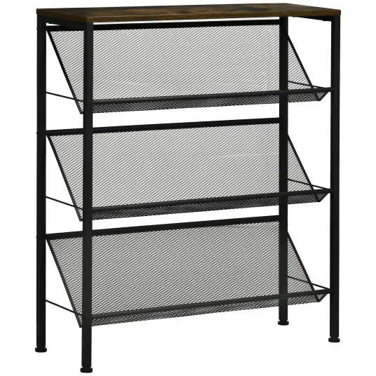 HOMCOM Dulap pentru Pantofi cu 3 rafturi si polita, din otel si PAL, 70x26x89 cm, negru