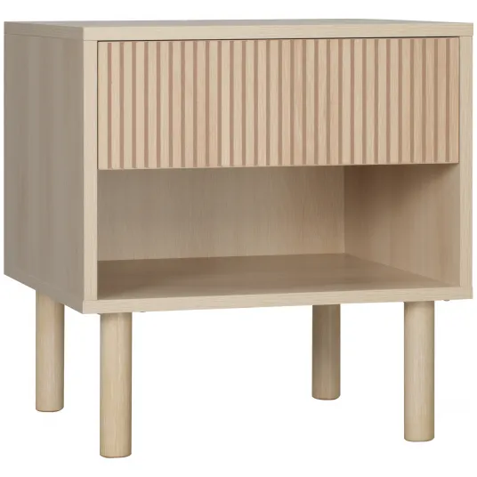 Ai nevoie de mai mult spatiu de depozitare in dormitorul tau sau in alte camere? Aceasta noptiera HOMCOM cu depozitare este aici pentru a te ajuta. Nuanta lemnului natural creeaza un stil modern, ceva diferit pentru casa si spatiul de birou. Sertarul si raftul deschis ofera mult spatiu de depozitare. Foloseste-l ca noptiera langa patul tau sau doar ca masuta in sufragerie.