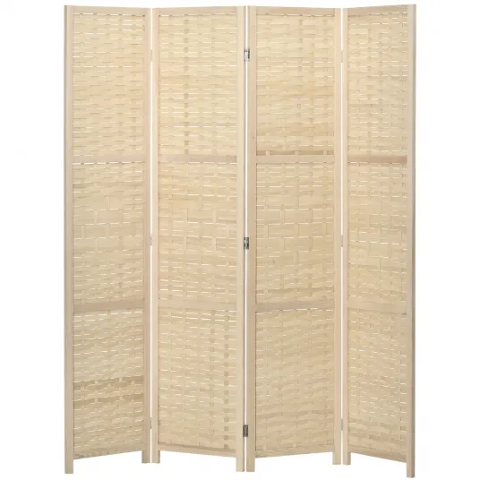 Ai nevoie de intimitate? Separatorul cu 4 usi de la HOMCOM este solutia perfecta pentru nevoile dumneavoastra. Cadrul din lemn este solid si are o acoperire eleganta cu efect de rachita in tonuri naturale, iar designul pliabil iti permite sa il depozitezi intr-un spatiu mic atunci cand nu ai nevoie de el. Imparteste spatiul si creeaza un colt privat oricand doresti cu separatorul nostru de camera!