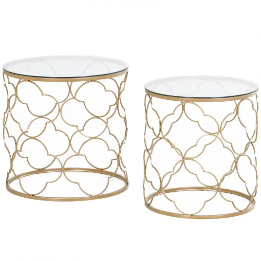Aduceti o nota de art deco in camera dvs. de zi cu aceste masute de cafea HOMCOM. Cu un cadru metalic robust decorat si un strat auriu si un blat din sticla securizata, acest set de 2 masute de cafea combina eleganta si caracterul practic. Designul masutelor de cafea care se pot stivui va permite sa economisiti spatiu atunci cand nu le folositi sau sa le plasati in spatii separate ori de cate ori aveti nevoie de ele.