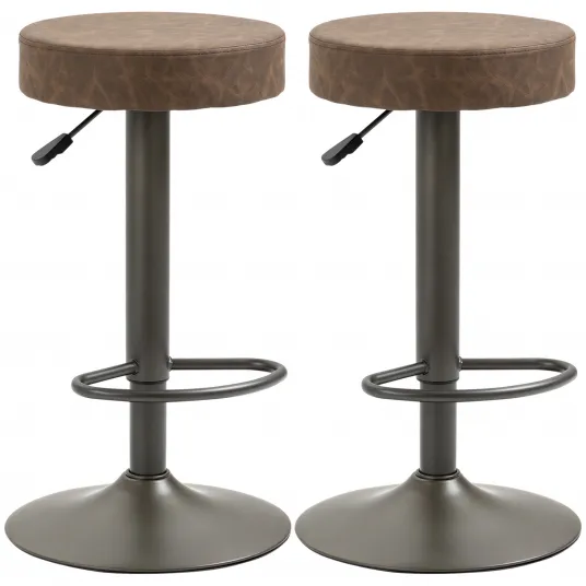 HOMCOM Set de 2 scaune de bar cu suport pentru picioare, scaune de bucatarie pivotante cu inaltime reglabila, 35x36x64-85cm, maroVrei sa oferi un stil nou casei sau afacerii tale? Este usor cu acest set de scaun de bar HOMCOM! Tapiteria din piele creeaza un efect elegant, iar captuseala moale le face confortabile. Scaunul pivotant la 360°, designul fara spatar si inaltimea reglabila permit sa te deplasezi si sa adaptezi scaunele inalte necesitatilor tale. Baza lata si rezistenta asigura echilibru si stabilitate optime, astfel incat sa te poti bucura de fiecare moment in relaxare.222847152222847152