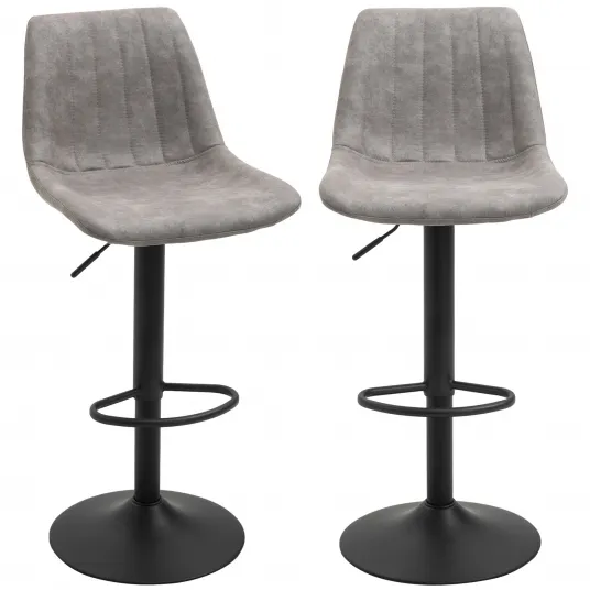 HOMCOM Set de 2 scaune de bar in stil industrial cu spatar din microfibra, suport pentru picioare si inaltime reglabila griSchimbati aspectul barului barului tau cu aceste scaune inalte in stil industrial elegant. Cu scaunul lor confortabil captusit acoperit cu microfibra, suportul pentru picioare integrat si spatarul ergonomic, sunt perfecte pentru a savura un aperitiv intr-o relaxare totala.222851328222851328