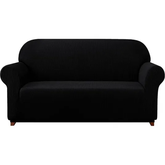 Husa de Canapea Elastica dintr-o Singura Bucata, Anti-Alunecare, Mare/3 Locuri, intre 145-185 cm, negru