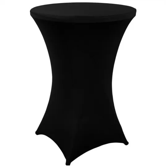 Husa spandex decorativa, elastica pentru mese cocktail si catering. Cu ajutorul acestei fete de masa se poate schimba usor decorul salilor de evenimente in functie de tema evenimentului si cromatica aleasa. Se spala usor, nu necesita calcare. Culoare: Negru Material: Poliester Brand: Relaxdays Spalare: 40˚C Calcare: Da Dimensiuni: 55-60 x 100 cm (Ø x h) Greutate: 280 g
