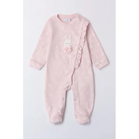 IDO, Salopeta din bumbac cu garnitura cu volane, Roz prafuit, 80 CM