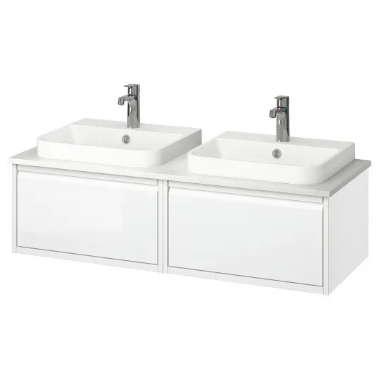 Combina cu alte corpuri din familia ÄNGSJÖN pentru a obtine o solutie coordonata pentru baie, perfect adaptata spatiului si nevoilor tale., Garantie 10 ani. Citeste mai multe in brosura de garantii., Include: 2 masti cu sertar, 1 blat, 2 lavoare semi-incastrate, 1 sifon si 2 baterii monocomanda., Daca nu esti sigur in privinta instalarii, contacteaza un specialist. Instalarea trebuie facuta in concordanta cu reglementarile de constructie si instalatii de apa., Este necesar silicon pentru instalare; nu este inclus.