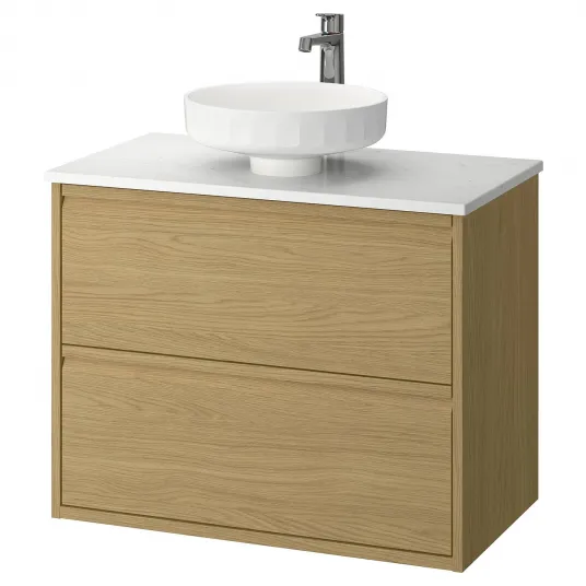 IKEA ÄNGSJÖN / LERSJÖN Masca lavoar+sertare/lavoar/baterie, aspect stejar/alb aspect marmura, 82x49x79 cm