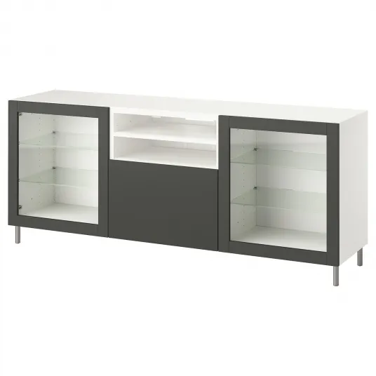 IKEA BESTÅ Comoda TV cu sertare, alb Sindvik/Lappviken gri inchis, 180x42x74 cm