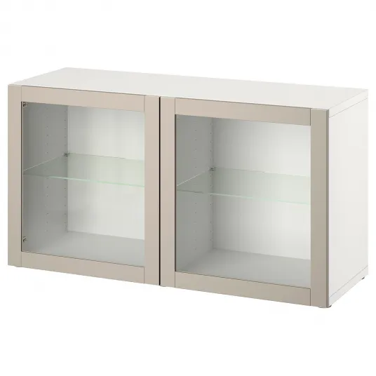 IKEA BESTÅ Corp polite/usi, alb/Sindvik gri deschis-bej, 120x42x64 cm