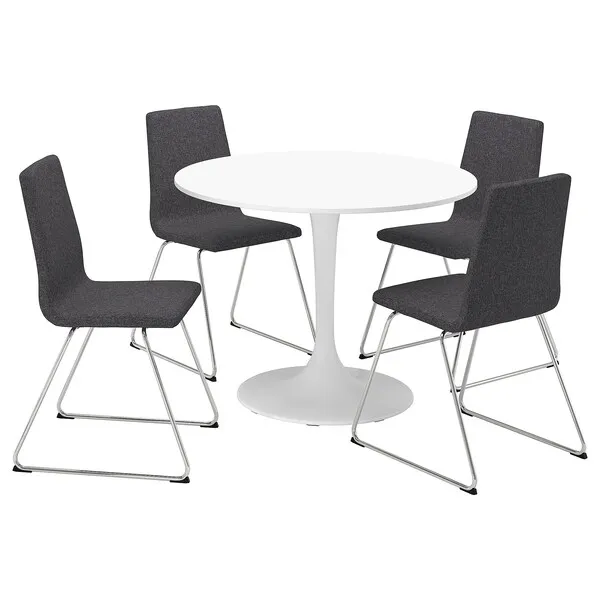IKEA DOCKSTA / LILLÅNÄS Masa + 4 scaune, alb/cromat Gunnared gri inchis, 103 cm