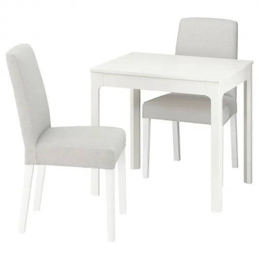 IKEA EKEDALEN / BERGMUND Masa + 2 scaune, alb/Orrsta gri deschis alb, 80/120 cmBlatul are un design practic fara imbinari; poti folosi masa fara sa o extinzi., Picioarele mesei sunt intotdeauna in colturile blatului chiar si cand masa este extinsa; este mult loc sub masa pentru scaune., Picioarele scaunului sunt din lemn masiv, un material natural, rezistent la uzura., Tapiteria scaunului este formata din fibre de poliester drept cu mici goluri intre ele - asigura elasticitate confortabila si o ventilatie mai buna ca sa te bucuri de o temperatura placuta cand stai asezat., Dupa mese animate, prinde bine sa stii ca poti scoate cu usurinta husa scaunului si o poti spala la masina., Se recomanda numai pentru uz interior., 2-4 locuri., Componente ale produsului se pot separa pentru reciclare sau recuperare energetica, daca acest serviciu este disponibil local., Include: 1 extensie., Completeaza cu protectia pentru podea FIXA care protejeaza suprafata de baza impotriva uzurii., Husa detasabila, lavabila.223163945223163945