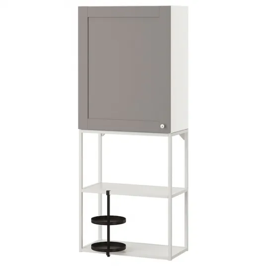 IKEA ENHET Ansamblu depozitare, alb/gri cadru, 60x32x150 cm