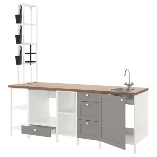 IKEA ENHET Bucatarie, alb/gri cadru, 243x63.5x241 cm