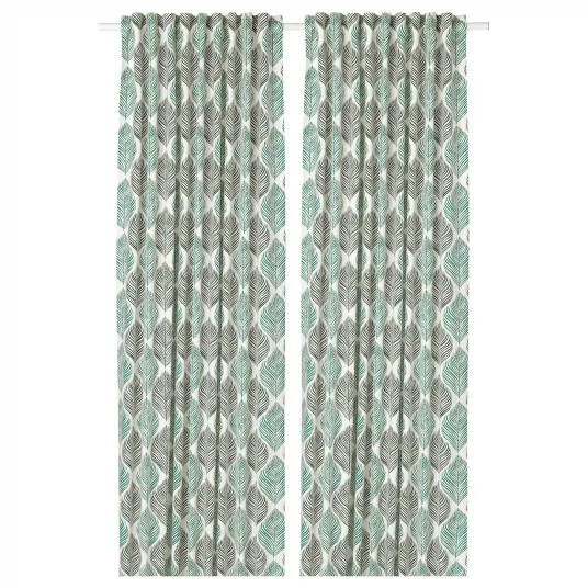 IKEA FJADERKLINT Perdele, 2 buc., alb/verde 145x300 cm