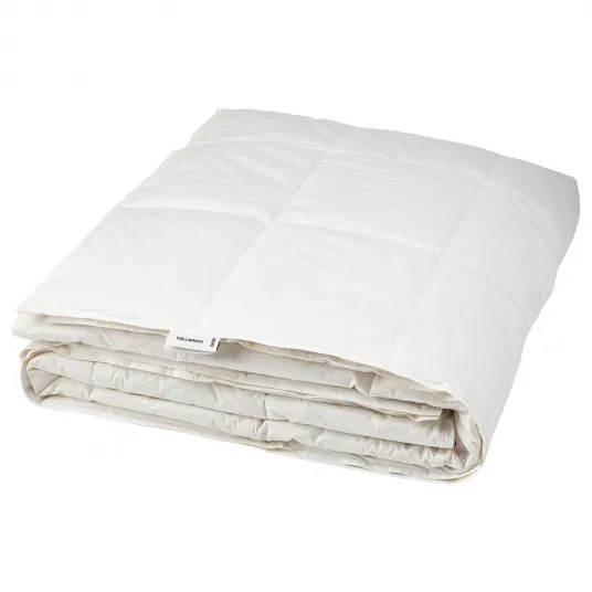 IKEA FJÄLLARNIKA Pilota toate anotimpurile, 240x220 cmPilota este lavabila la masina la 60°C, o temperatura care distruge acarienii., O pilota pentru toate anotimpurile din bumbac moale, umpluta cu puf si pene de rata., Pilota asigura nivelul perfect de caldura pe tot parcursul anului deoarece contine 1 pilota calduroasa si 1 pilota cu nivel scazut de caldura, care se pot alatura sau folosi separat., O alegere buna daca vrei sa schimbi nivelul de caldura al pilotei in functie de anotimp., 252 noduri., Valoarea indica numarul de noduri pe cm² de material. Cu cat numarul de noduri este mai mare, cu atat tesatura este mai densa., Stoarce dupa spalare la uscator pana cand umplutura este complet uscata., Acest produs este testat si respecta standardul CAN/CGSB 4.2 Nr. 27.5 privind inflamabilitatea si indeplineste cerinta privind timpul de propagare a flacarii ≥7,1 sec.223164048223164048