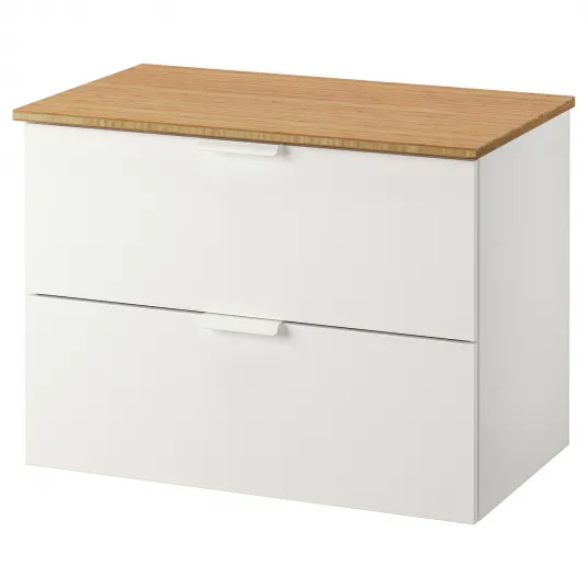 IKEA GODMORGON / TOLKEN Masca lavoar cu 2 sertare, alb/bambus, 82x49x60 cm