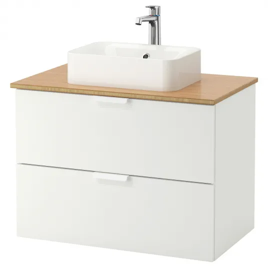 IKEA GODMORGON/TOLKEN / HORVIK Suport lavoar+blat 45x45 lavoar, alb/bambus baterie Brogrund, 82x49x72 cm