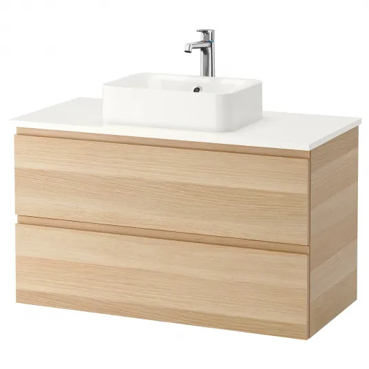Cand vine vorba de durabilitate, IKEA nu face compromisuri. GODMORGONTOLKEN HORVIK Suport lavoar + blat este realizat din materiale durabile, asigurand nu numai longevitate, ci si o alegere ecologica pentru baia dumneavoastra. Stejarul folosit in aspectul lavoar este atent selectat pentru rezistenta si rezistenta la umezeala, garantandu-i durabilitatea chiar si in mediile de baie umede.
