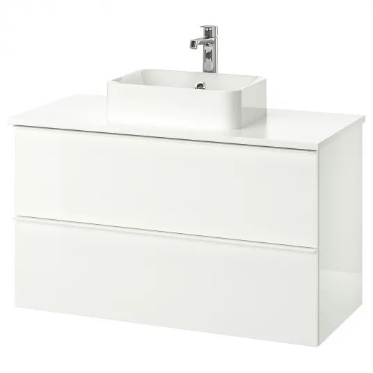 IKEA GODMORGON/TOLKEN / HORVIK Suport lavoar+blat 45x45 lavoar, lucios alb/alb baterie Brogrund, 102x49x72 cm