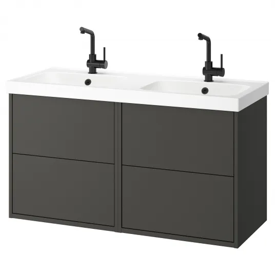 IKEA HAVBÄCK / ORRSJÖN Masca lavoar/lavoar/baterii, gri inchis, 122x49x69 cm