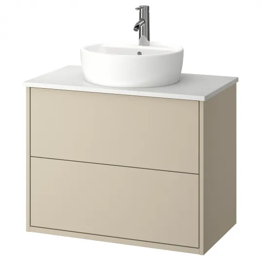 IKEA HAVBÄCK / TÖRNVIKEN Masca lavoar+sertare/lavoar/baterie, bej/alb aspect marmura, 82x49x79 cm