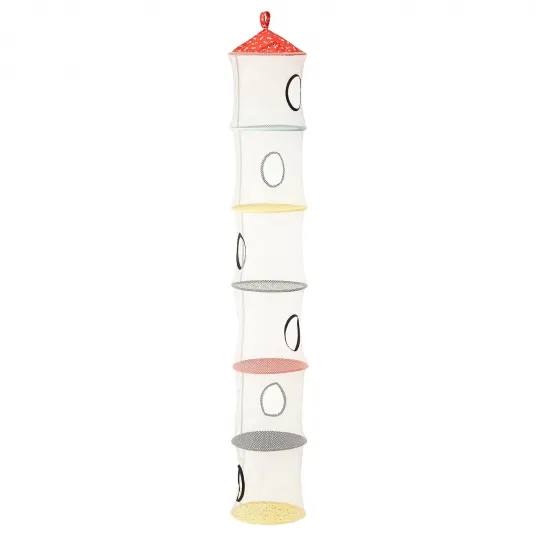 Подвешивается на липучке, которая открывается, если ребенок карабкается.