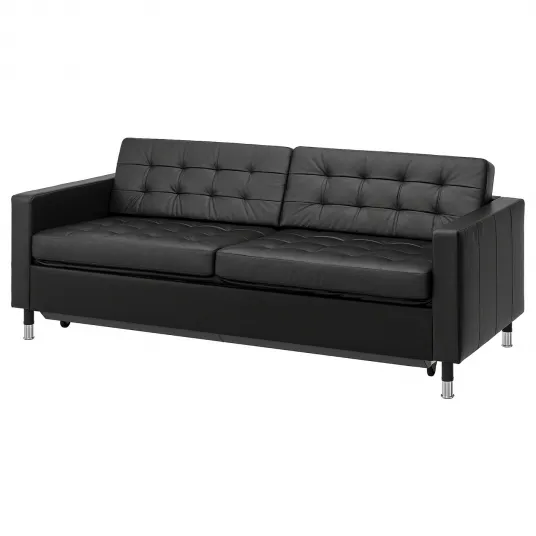 IKEA LANDSKRONA prezinta un design minimalist cu linii curate, facandu-l un plus elegant pentru orice decor interior. Tapiteria sa din piele neagra, cunoscuta sub numele de GrannBomstad, adauga o nota de rafinament, emanand eleganta si lux. Cadrul metalic rezistent garanteaza durabilitatea, asigurandu-se ca aceasta canapea va ramane o piesa centrala in casa ta pentru anii urmatori.