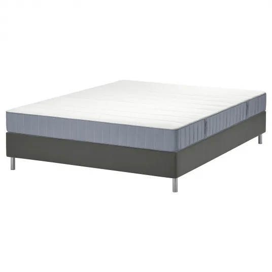 IKEA LYNGÖR Pat, Vesteröy ferma/bleu gri inchis, 140x200 cmUn strat de spuma deasupra iti confera un plus de confort si suport., Arcurile impachetate individual izoleaza miscarile ca sa nu iti deranjezi partenerul cand dormi., Arcurile impachetate sunt concepute pentru a permite aerului sa circule si regleaza temperatura corpului., Materialul elastic este moale la atingere si se adapteaza formei corpului., Salteaua este impachetata rulata si este usor de transportat acasa; manerele laterale practice sunt utile la transport., Pe langa saltea, alege perna preferata pentru un somn cu adevarat odihnitor., Arcurile sunt pozitionate de la o margine la alta pentru a evita spatiile libere daca vrei sa asezi doua saltele una langa cealalta., Picioarele sunt incluse in pret, dar ambalate separat., Saltaua este inclusa in pret, dar ambalata separat., Aceasta combinatie de produse are componente cu conditii de garantie diferite. Poti afla mai multe informatii despre acestea in brosura de garantii pe www.ikea.ro., Instructiunile de ingrijire se gasesc in interiorul husei., Asternuturile se vand separat.222675070222675070