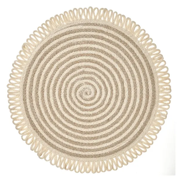 Un suport de farfurie decorativ care da un aer mai primitor decorului mesei., Pune-l sub fiecare farfurie, in mijlocul mesei, sau foloseste-l ca obiect decorativ in alt loc din casa., Confectionat dintr-un amestec de iuta inalbita si neinalbita cu mici bucle pe margine., Confectionat din iuta, un material natural cu un aspect cald si variatii mici de culoare; fiecare suport pentru farfurie este unic., Suporturile pentru farfurii pe masa fac decorul mai agreabil si mai primitor, indiferent de ocazie., Protejeaza suprafata blatului si reduce zgomotul produs de farfurii si de tacamuri., Acest produs este lucrat de Classical din Bangladesh - o intreprindere sociala care, prin intermediul productiei de obiecte din iuta, creeaza locuri de munca si un venit constant pentru femeile din zonele rurale.