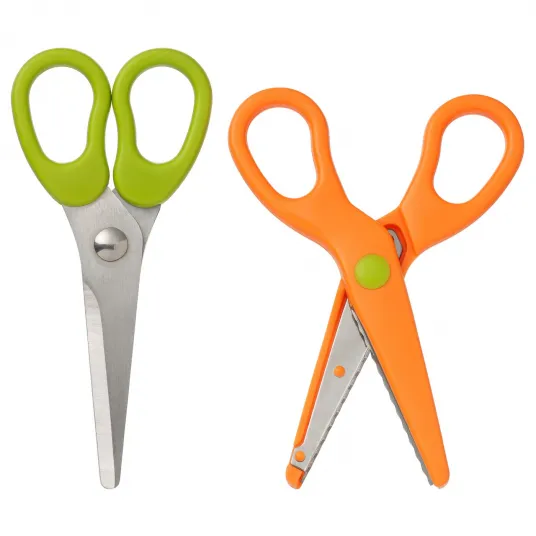 Doua tipuri de foarfece: pentru margini drepte sau in zigzag. Design special creat pentru copii. Reduce riscul accidentarii. AVERTISMENT! Margine ascutita si risc de accidentare. Nu este recomandat copiilor cu varsta mai mica de 4 ani. Se recomanda copiilor mai mari de 4 ani. Acest produs are marcajul CE.