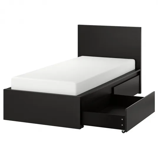 IKEA MALM Cadru pat inalt+2 cutii depozitare, negru-maro/Luröy, 90x200 cm