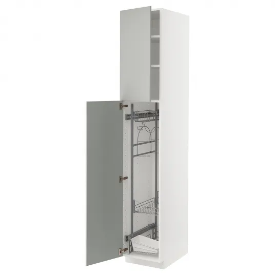 IKEA METOD Corp inalt + accesoriu curatenie, alb/Havstorp gri, 40x60x220 cm
