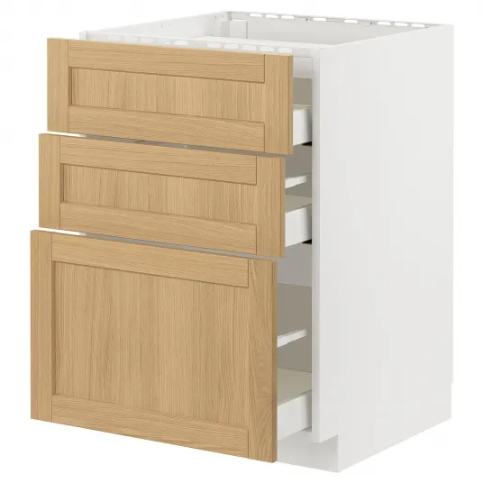 IKEA METOD / MAXIMERA Corp baza plita/3fronturi/3sertare, alb/Forsbacka stejar, 60x60 cm