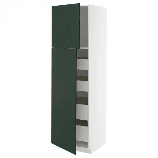 IKEA METOD / MAXIMERA Corp inalt+2 usi/4 sertare, alb/Havstorp verde inchis, 60x60x200 cmCod corp ME/MA 593, Structura de cadru solida, cu grosimea de 18 mm., Balamale cu functie de blocare; se pot monta pe usa, fara suruburi; usa se scoate usor pentru curatare., Usa se poate monta cu deschidere pe stanga sau pe dreapta., Garantie 25 ani. Citeste mai multe in brosura de garantii., Sertarul MAXIMERA este glisant, complet extensibil, cu amortizoare integrate; se inchide incet si silentios., Peretii sunt construiti din materiale diferite si, de aceea, necesita diferite tipuri de dispozitive de fixare. Foloseste-le pe cele potrivite pentru peretii casei tale (se vand separat)., Inaltimea, adancimea si latimea balamalei sunt reglabile., Sina de suspendare se vinde separat., Completeaza cu picioare si plinta; se vand separat., Se completeaza cu un maner rotund sau clasic., Completeaza cu sina de suspendare METOD pentru montarea corpului pe perete.223164641223164641