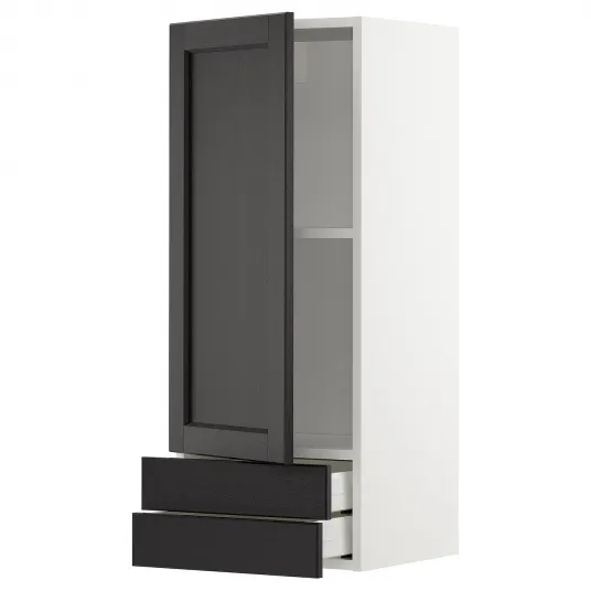 IKEA METOD / MAXIMERA Corp suspendat cu usa/2 sertare, alb/Lerhyttan vopsit negru, 40x100 cm