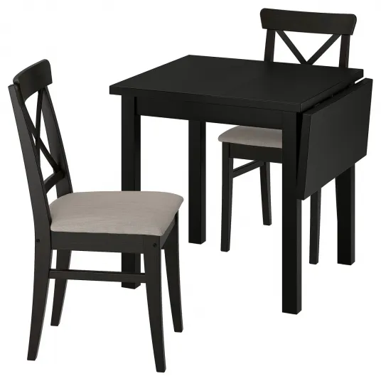 IKEA NORDVIKEN / INGOLF Masa + 2 scaune, negru/Nolhaga gri-bej negru-maro, 74/104 cm