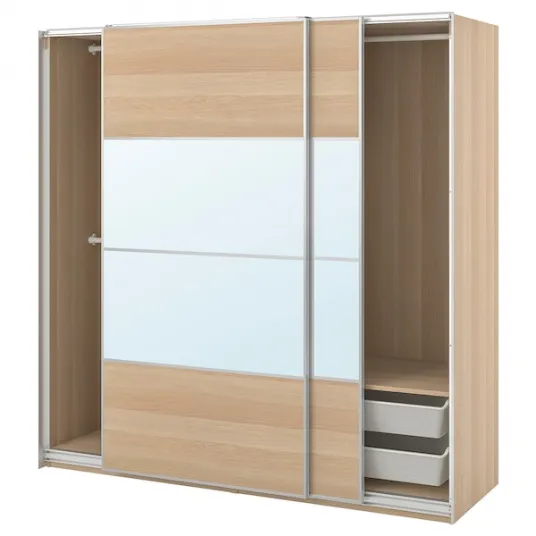 Garantie 10 ani. Citeste mai multe in brosura de garantii., Adapteaza combinatia PAX/KOMPLEMENT nevoilor tale cu ajutorul instrumentului de planificare., Picioare reglabile pentru a-si pastra echilibrul chiar si pe suprafete denivelate., Usi glisante; ai mai mult loc pentru mobilier si economisesc spatiu atunci cand sunt deschise., Mecanismul de inchidere lina este integrat in sine si amortizeaza usile ca sa se deschida si sa se inchida incet si silentios., Cu Planificatorul PAX iti poti completa usor combinatia cu iluminat integrat. Dupa ce alegi becul, planificatorul va indica accesoriile necesare pentru a completa solutia., Poti muta organizatoarele in interior asa cum iti place sau le poti schimba ulterior. Cu mici schimbari poti adapta solutia de depozitare in functie de hainele tale., Pentru depozitarea hainelor impaturite, a sosetelor sau a accesoriilor; permite circulatia aerului., In aceasta solutie incap minim 120 de umerase de haine doar pe sinele pentru umerase., Intoarce panoul pentru a schimba aspectul – fiecare parte are un finisaj diferit. Alege un aspect sau o combinatie uniforma., Usile glisante nu necesita manere. Au un aspect clasic, usor de combinat cu diverse stiluri., Pentru asamblarea acestui articol de mobilier sunt necesare 2 persoane., Peretii sunt construiti din materiale diferite si, de aceea, necesita diferite tipuri de dispozitive de fixare. Foloseste-le pe cele potrivite pentru peretii casei tale (se vand separat)., Distanta minima necesara fata de plafon: 205cm., Accesoriile de depozitare pentru interior se vand separat., Bara sustine aproximativ 30 de camasi pe umerase., Produsul se poate recicla sau utiliza pentru recuperare energetica, daca acest serviciu este disponibil local.