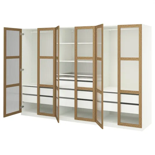 IKEA PAX / TONSTAD Combinatie dulap, alb/frnr stjr sticla, 300x60x201 cm