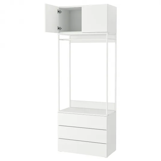 Bine ati venit in lumea IKEA PLATSA - solutia suprema pentru a va organiza spatiul cu stil! Acest model special PLATSA, cu cele doua usi si trei sertare, ofera o combinatie de functionalitate si eleganta care se va potrivi perfect oricarui interior modern de casa. Cu finisajul alb elegant si designul compact, dulapul IKEA PLATSA este un plus obligatoriu pentru spatiul tau de locuit.